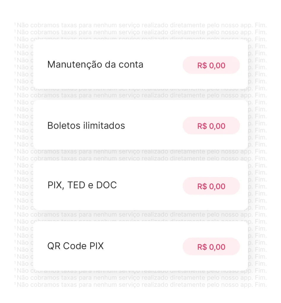 1 Não cobramos taxas para nenhum serviço realizado diretamente pelo nosso app. Fim.